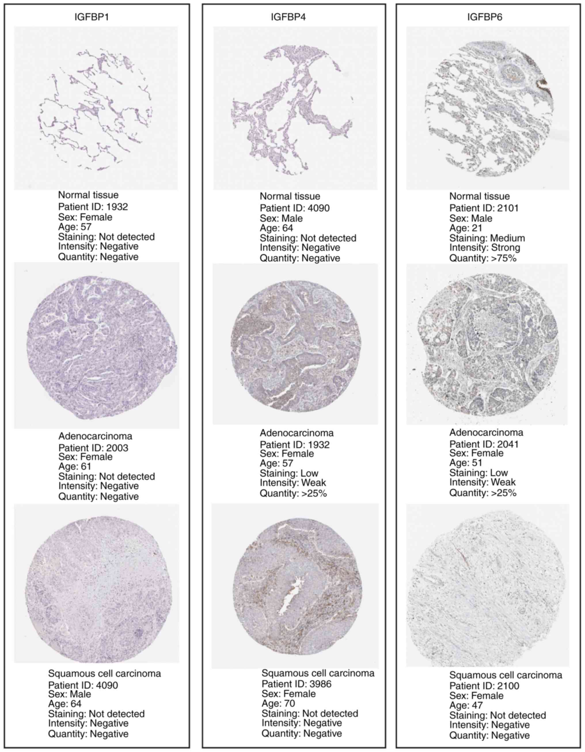 Hu Q, Zhou Y, Ying K and Ruan W: IGFBP, a novel target of lung cancer? Clin Chim Acta. 466:172–177. 2017. View Article : Google Scholar : PubMed/NCBI | |